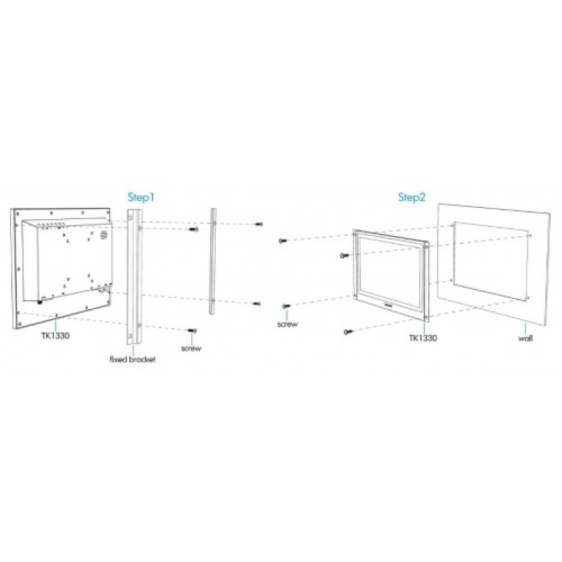 Versatile Mounting Methods The TK1330 supports rear/wall mounts with included integrated brackets which will allow you to mount the monitor in the back of a wall or cavity space for flush and seamless mounting Also, with both VESA 75mm and 100mm mounting holes, the monitor can be mounted to wall brackets and desktop stands for easy adjustments. |