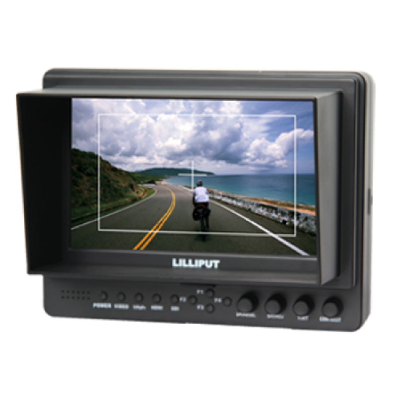 The Lilliput 665-O/P is a 7" widescreen LCD HD field monitor with HDMI, component video inputs (BNC), Features include peaking functions, focus assistance. A sunhood is included. DSLR optimised.